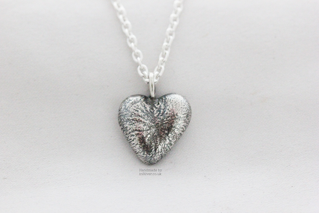 The molten heart pendant is an organic creation, using the  flame to carefully guide the molten metal directly into a heart shape, allowing each one to have it’s own uniqueness. This one has the black finish to illustrate the rippled texture.