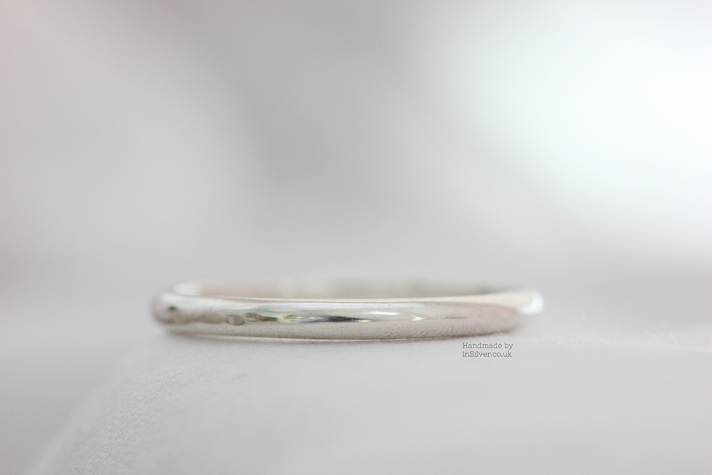 A plain, yet simple and sophisticated narrow silver band, worn on it’s own or add it to a set of stacking rings.